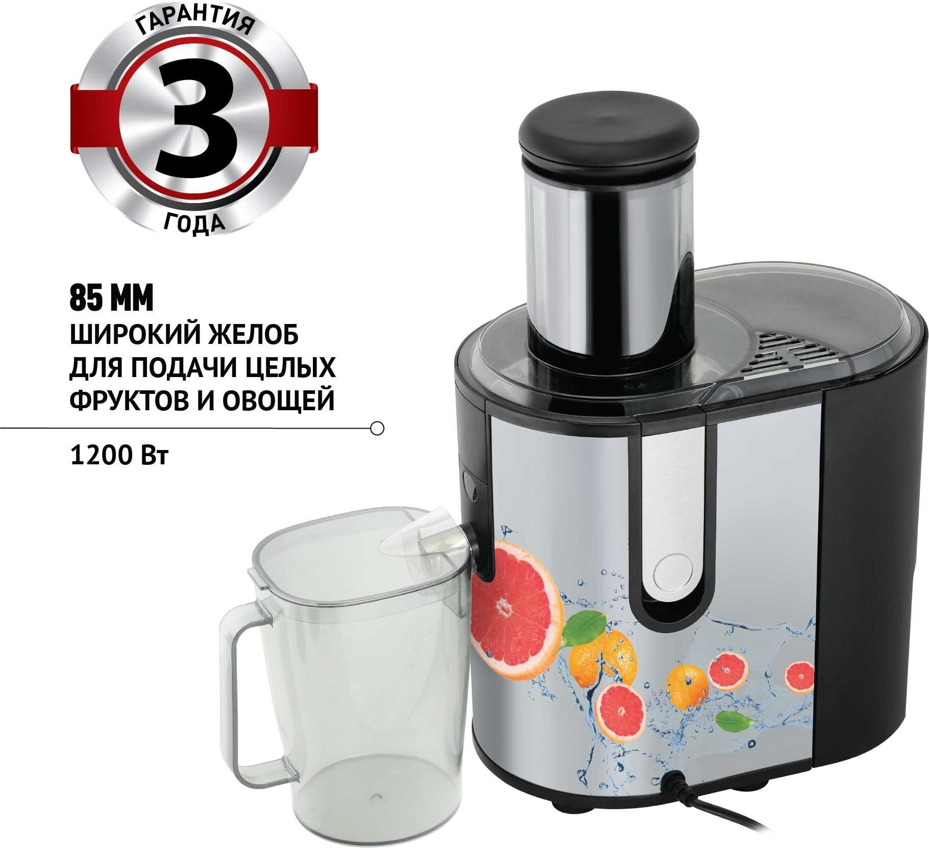 Соковыжималка POLARIS PEA 1241A Fruit Fusion, нержав.сталь/черный