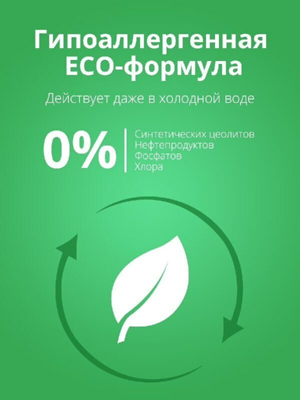 | Плюсы: | Хорошо стирает. Без фосфатов, в составе цеолит - защита от накипи. |