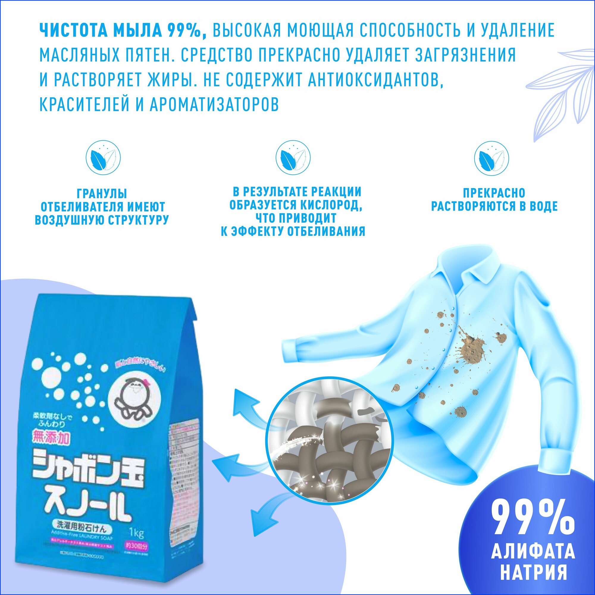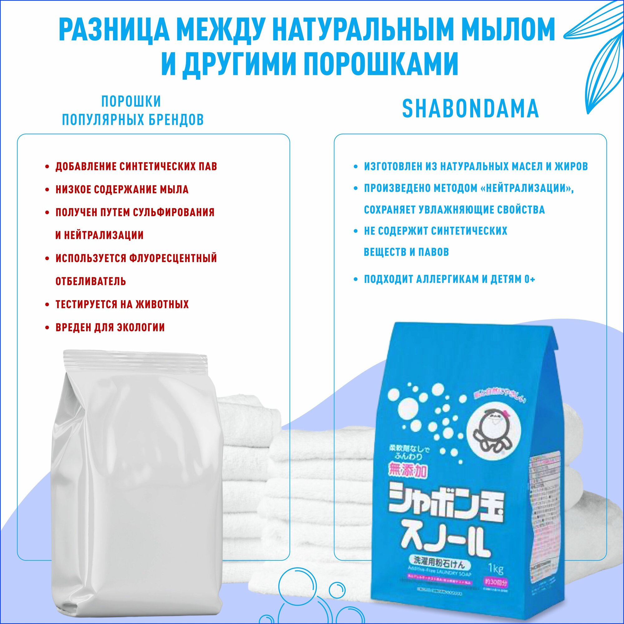 Купить Натуральное порошковое мыло Shabondama Сноул для стирки белья, с кондиционером, 1.0 кг