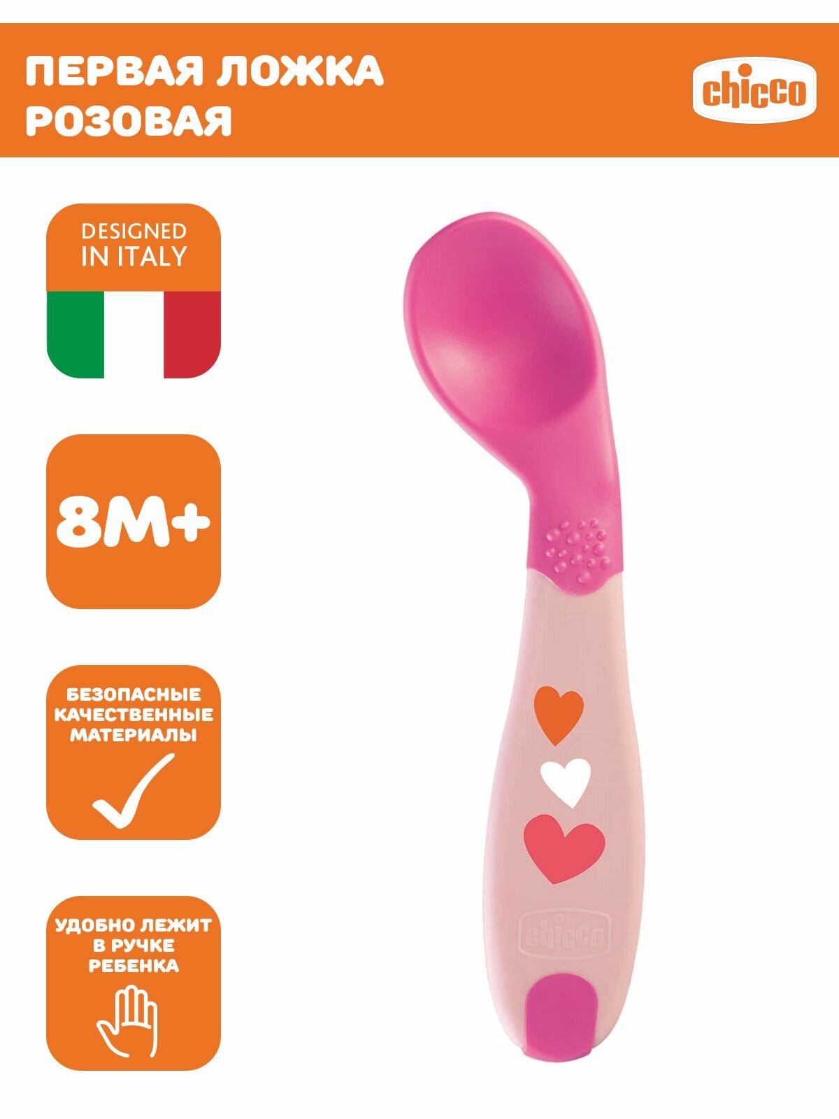 Первая ложка 8+ розовая Chicco, Кухонные принадлежности, Розовый