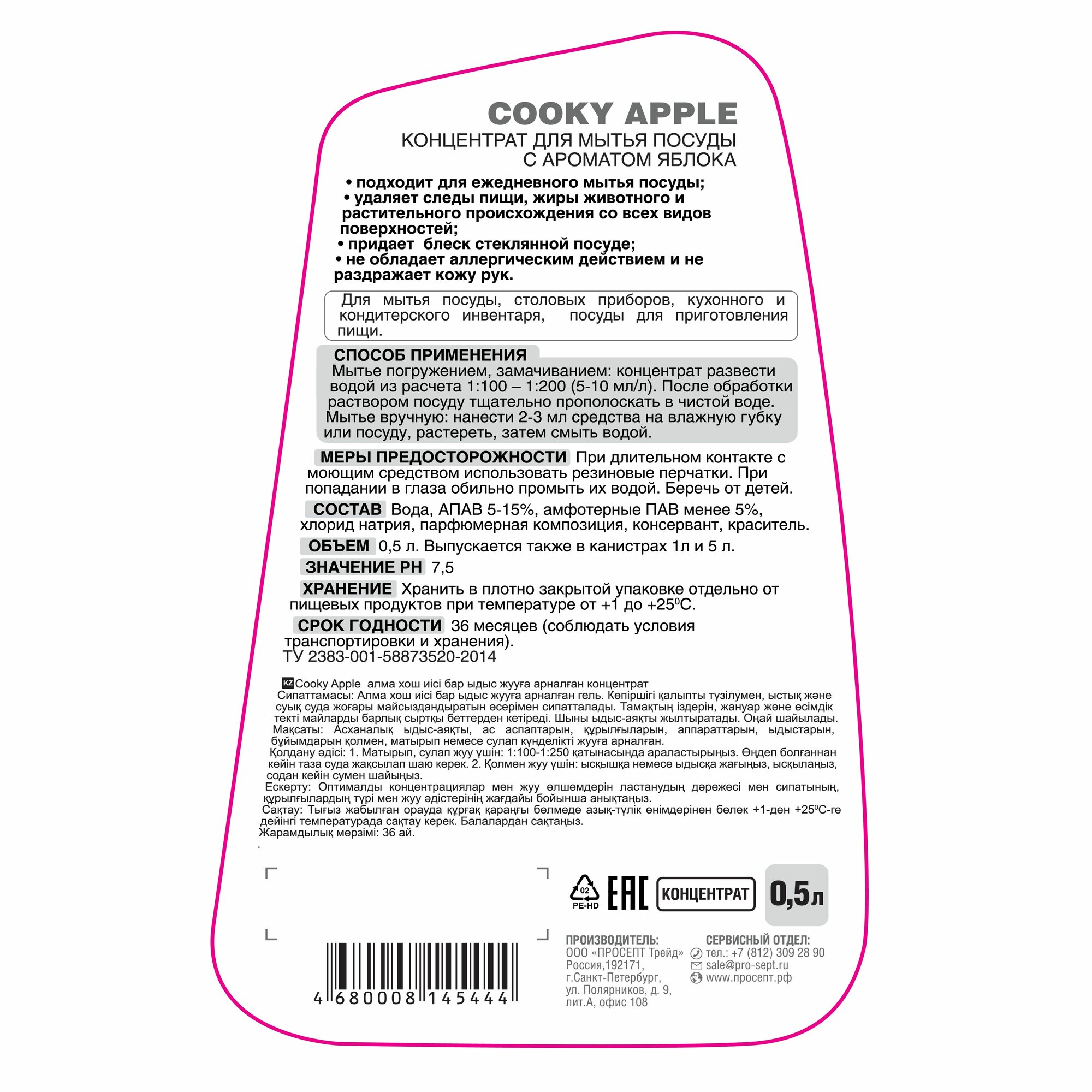 Гель для мытья посуды Prosept "Cooky Apple", с ароматом яблока, концентрат, 0,5 л