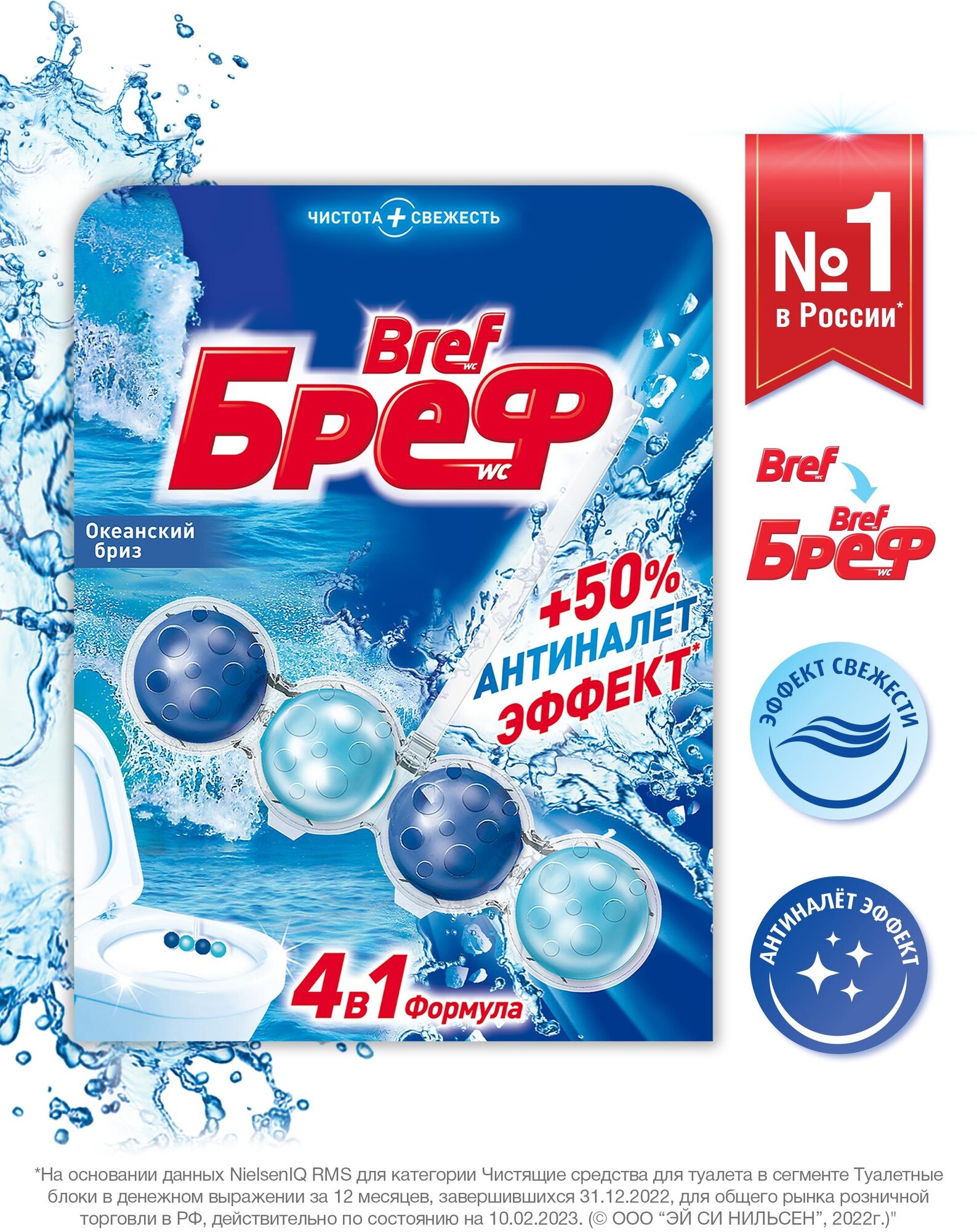 СохранитьОсвежитель WC (для туалета) твердый BREF, 50 г, (Бреф) Сила-Актив, "Океанский Бриз" интересное: