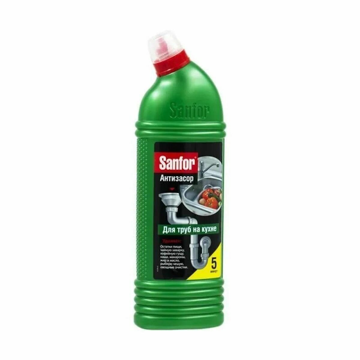 Гель д/прочистки труб SANFOR Антизасор 750мл 5 мин. д/кухни