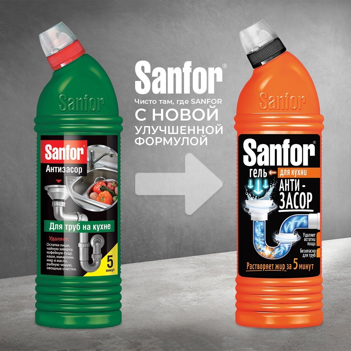 Гель Sanfor для очистки труб на кухне 750 мл