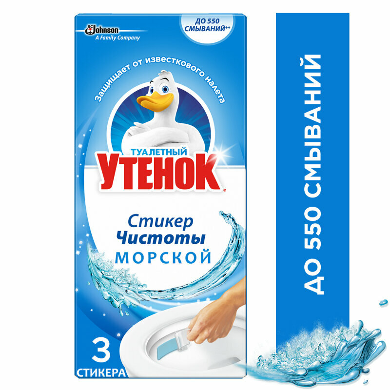 Средство для санузлов туалетный утенок стикер чистоты 3шт Морской 4620000430087