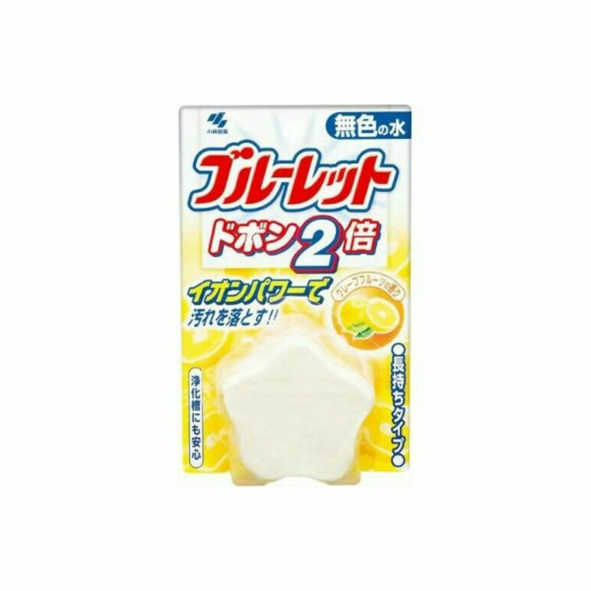 KOBAYASHI Bluelet Dobon Double Grapefruit Таблетка для бачка унитаза очищающая и дезодорирующая, с ароматом грейпфрута, 120г. 1/48
