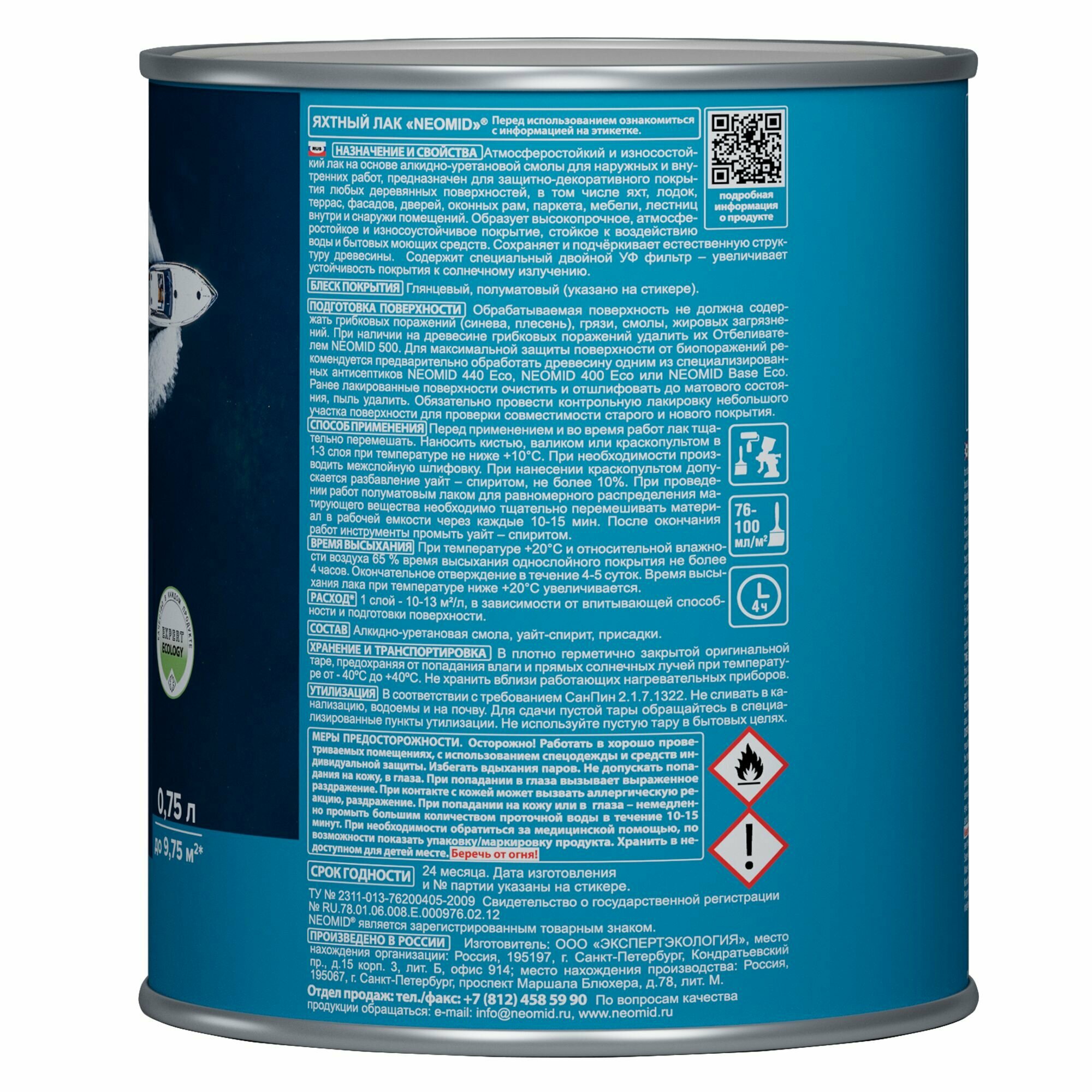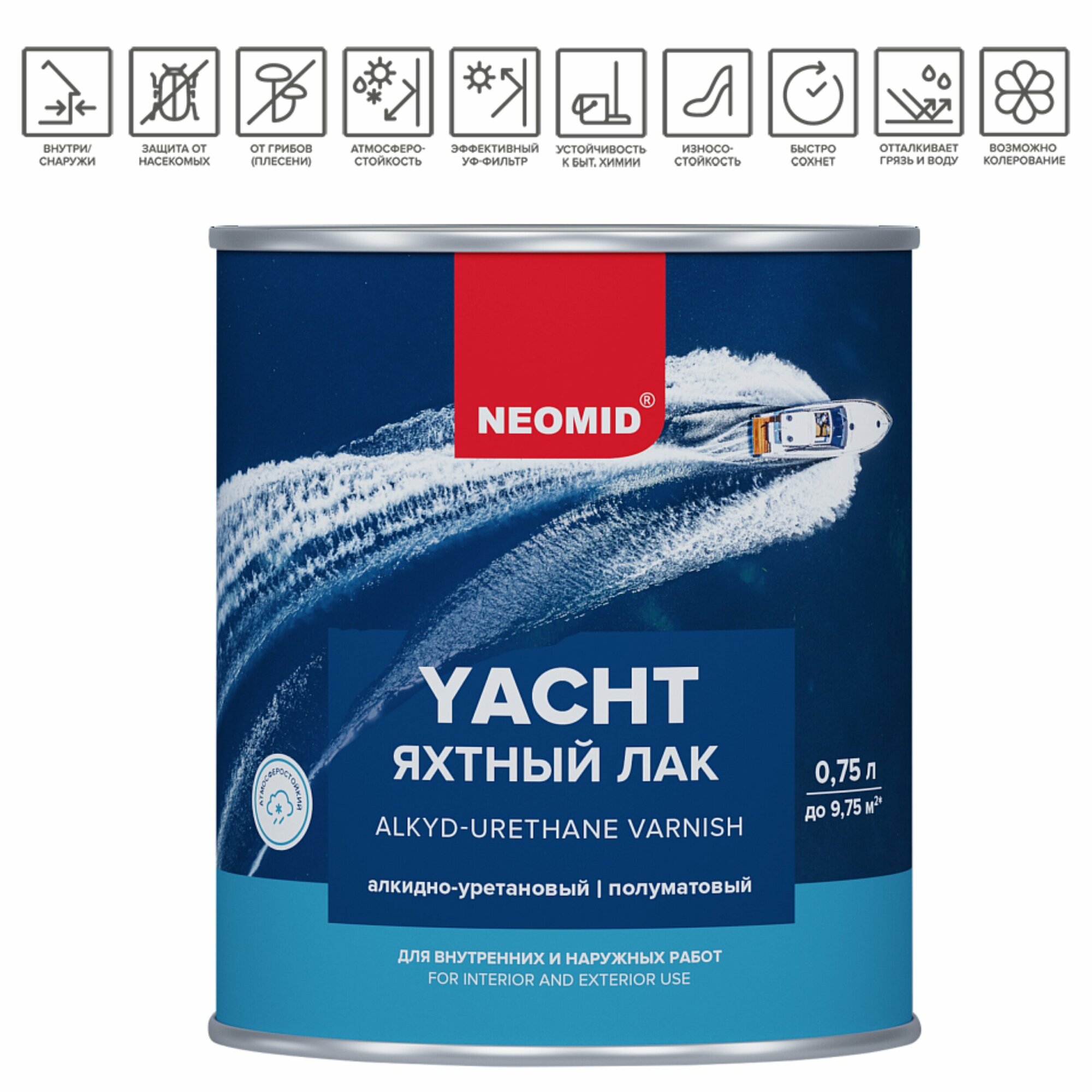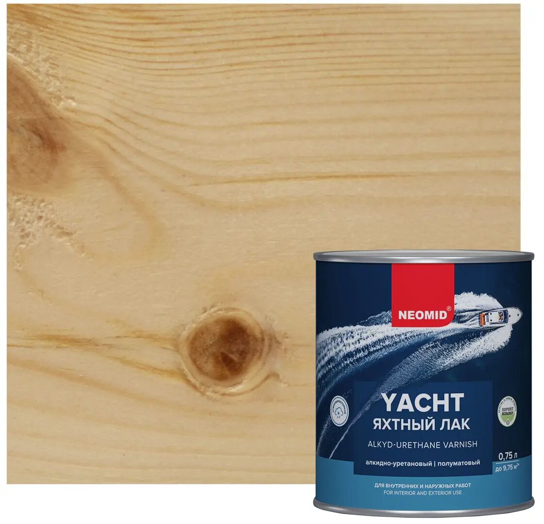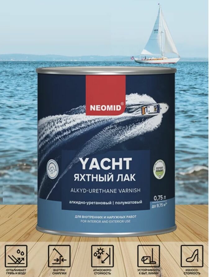 Купить Лак Яхтный Neomid Yacht 0.75л Алкидно-Уретановый, Полуматовый, Износостойкий / Неомид Яхт.