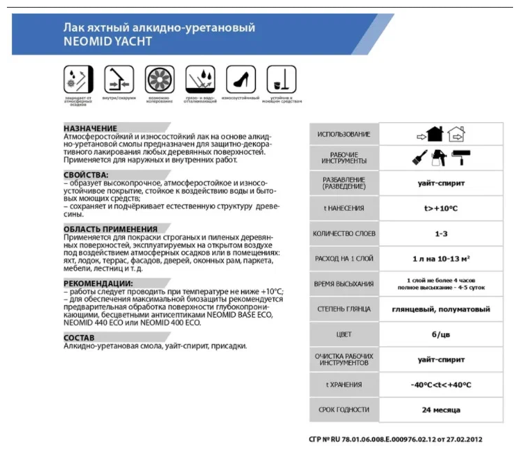 Ниже Вы можете прочитать отзывы на Лак Яхтный Neomid Yacht 0.75л Алкидно-Уретановый, Полуматовый, Износостойкий / Неомид Яхт., ознакомится с подробными характеристиками, посмотреть интересные обзоры и фотографии на Лак Яхтный Neomid Yacht 0.75л Алкидно-Уретановый, Полуматовый, Износостойкий / Неомид Яхт..