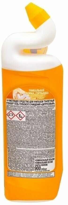 Туалетный Утенок Чистящее средство для унитаза Цитрусовый, гель глубокого очищения, 900 мл