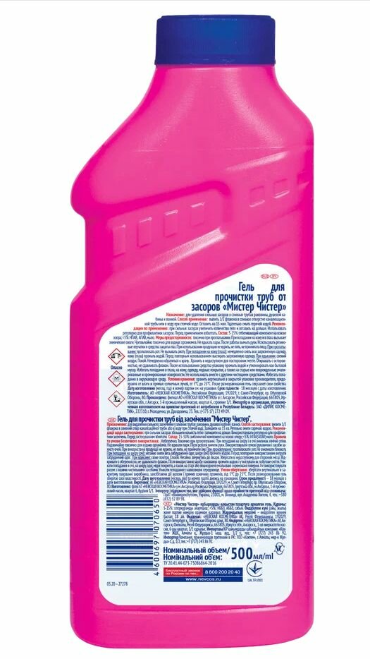 Гель для прочистки труб от засоров Мистер Чистер 500 мл. интересное: