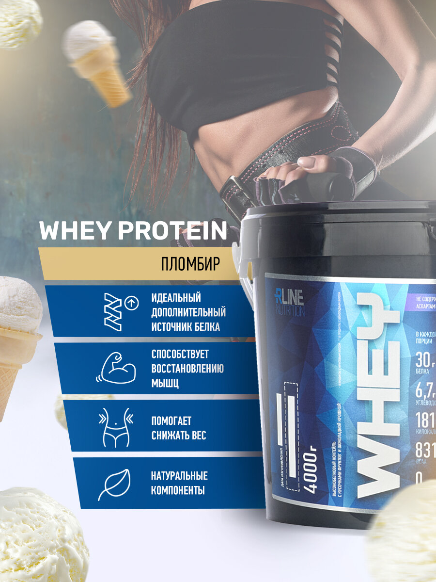 Сывороточный протеин Rline Whey, 1000 г, со вкусом (пломбира)