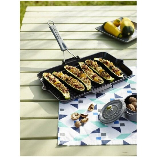 Сковорода-гриль Staub прямоугольная, с силиконовой ручкой 34х21 см .