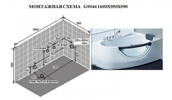 СохранитьВанна пристенная GEMY G9046 B L 161x96 интересное: