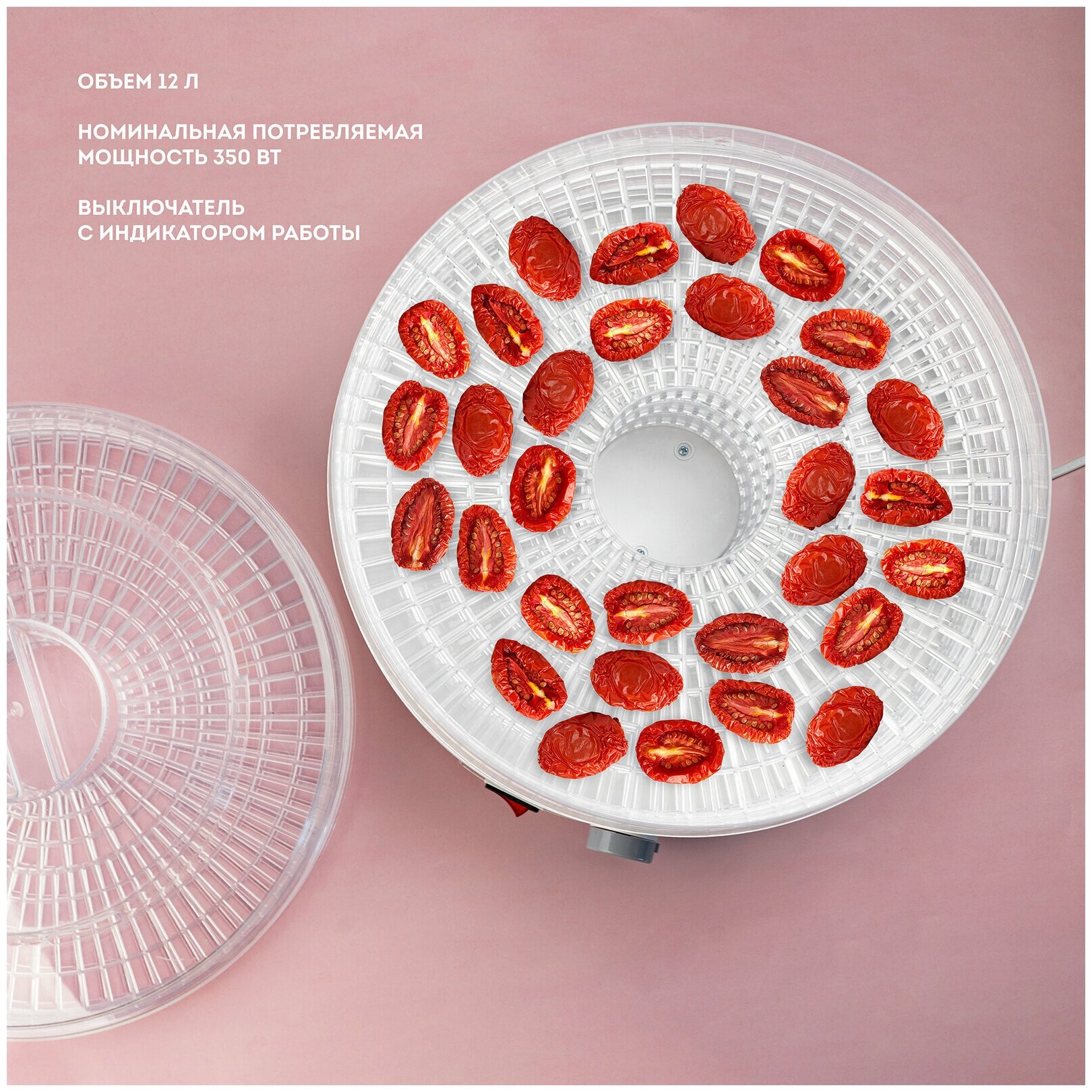 | Плюсы: | Сушилка для овощей и фруктов вполне соответствует заявленным параметрам, объемная, работает бесшумно, сушит вполне уверенно, до любого желаемого состояния- от подвяливания до твердо высушенного, в том числе и помидоры. |