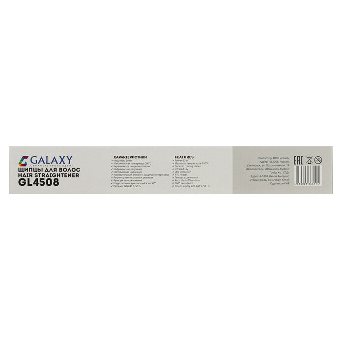 Купить Galaxy Инфракрасный выпрямитель Galaxy GL 4508, 60 Вт, керамич. покрытие, 35х90 мм, 200°С, белый