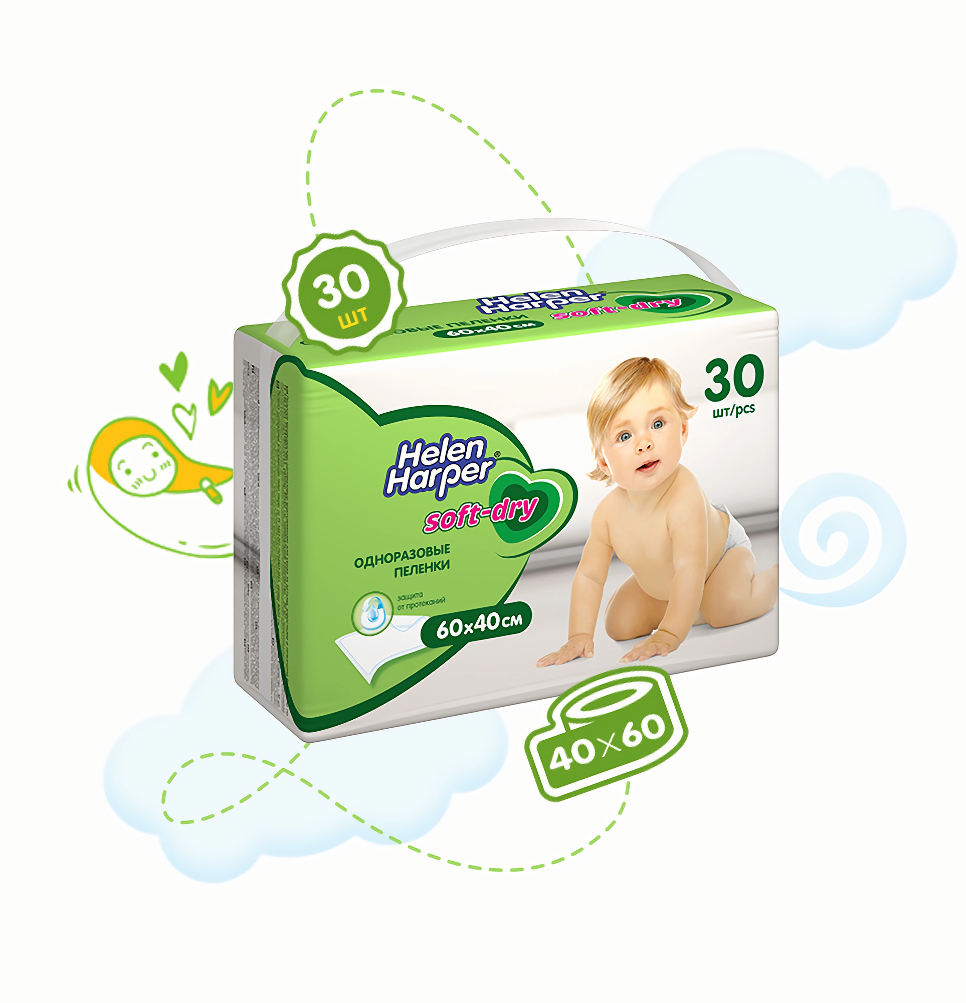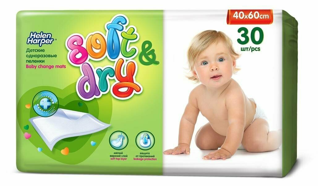 HELEN HARPER Детские впитывающие пеленки Soft&Dry 40х60 (30 шт.)/9