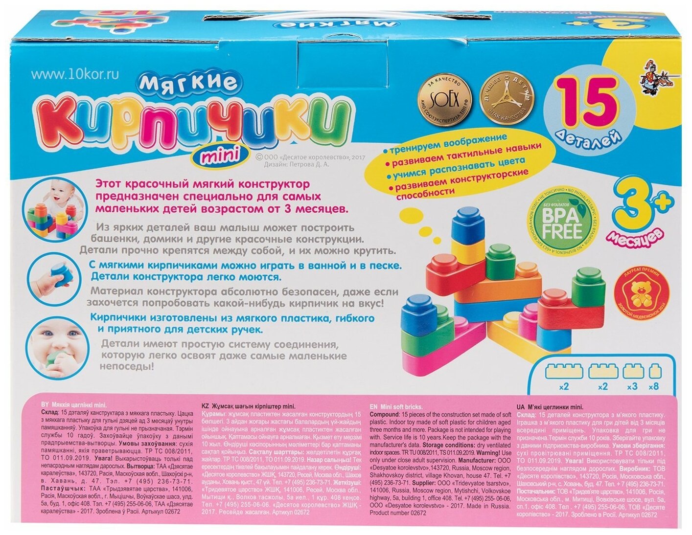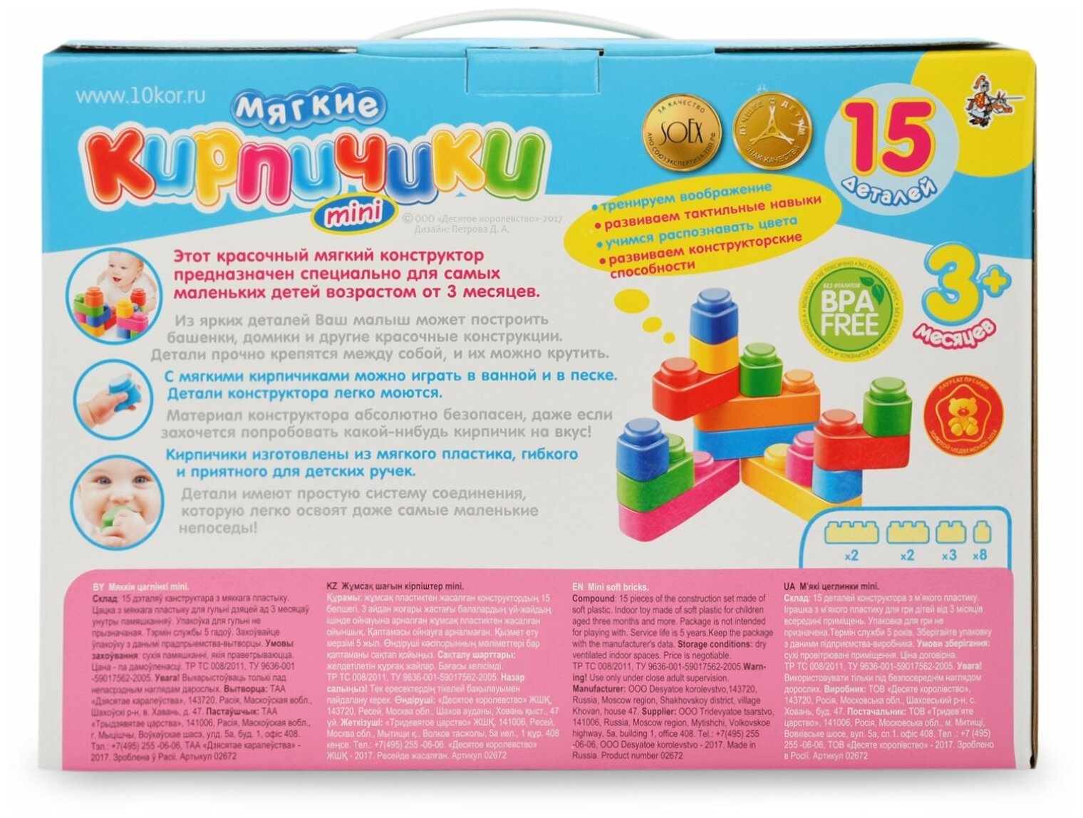 Мягкие кирпичики мини. Конструктор из мягкого материала для самых маленьких 15 деталей - Десятое королевство
