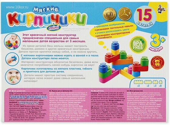Кирпичики мягкие мини. Конструктор из мягкого материала для самых маленьких 15 деталей интересное: