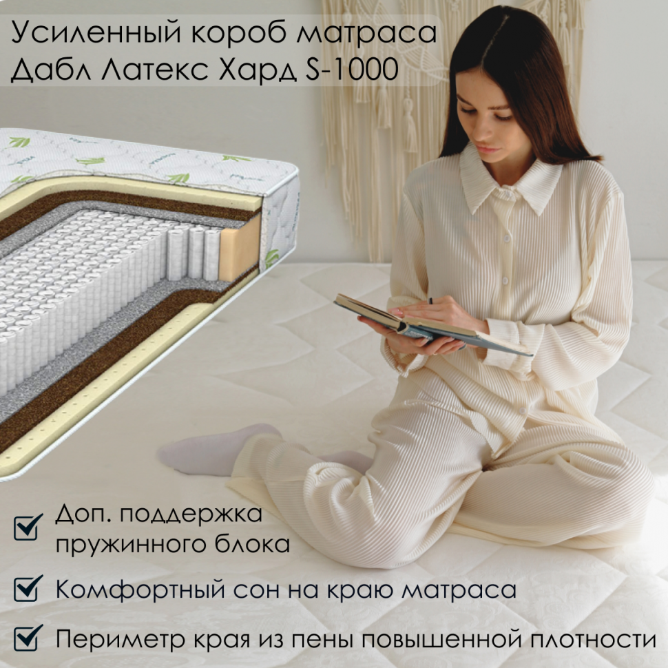 Матрас Everest Дабл Латекс Хард S1000 - пружины, независимый блок мультипакет, с латексом, средняя жесткость, от производителя, высота 21 185х200