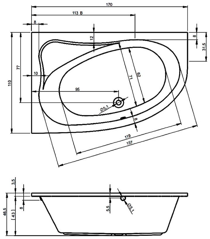 Акриловая ванна Riho Lyra 170x110 B017001005 (BA6300500000000) R без гидромассажа интересное: