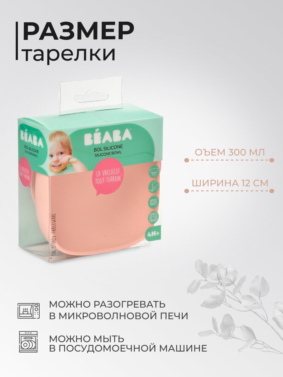 Тарелка на присоске детская Beaba 300 мл., силиконовая тарелка для кормления и прикорма малышей с 4 месяцев