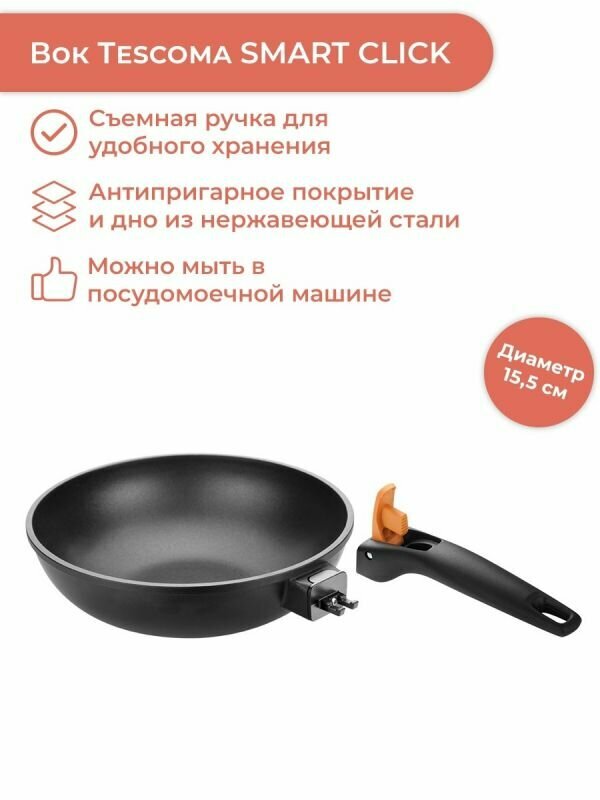 Вок Tescoma SmartClick d28см, съёмная ручка 605058.00