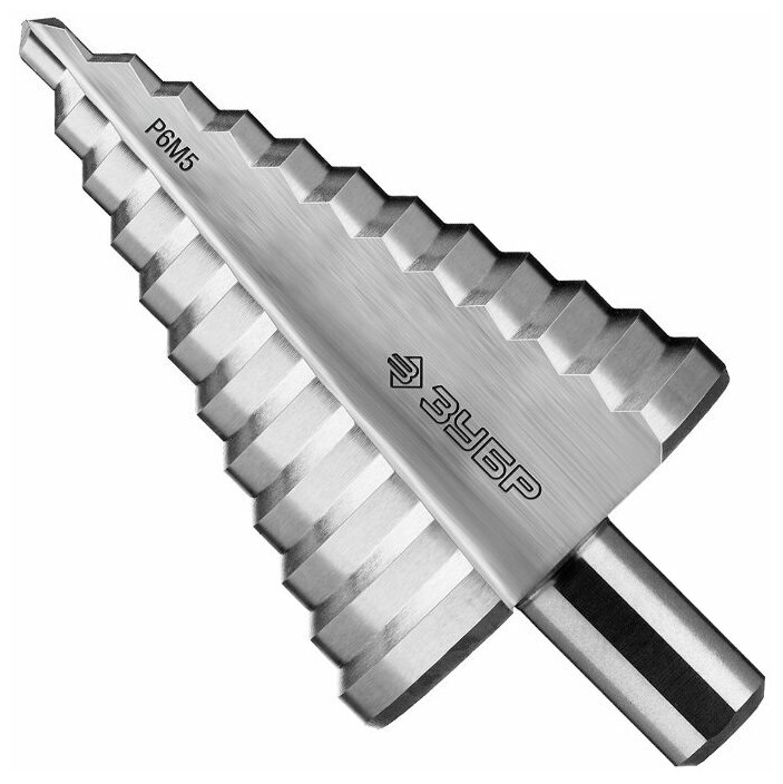 ЗУБР Сверло ЗУБР "профессионал" ступенчатое по сталям и цвет. мет., ст. Р6М5, 6-52, 12 ступ., трехгран. хв., L- 100 мм, 13мм, ( 29670-6-52 )