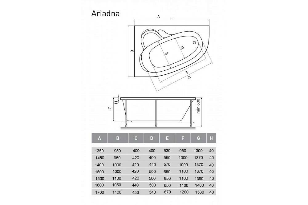 Ванна Relisan ARIADNA 150x110, левосторонняя (Гл000001636)