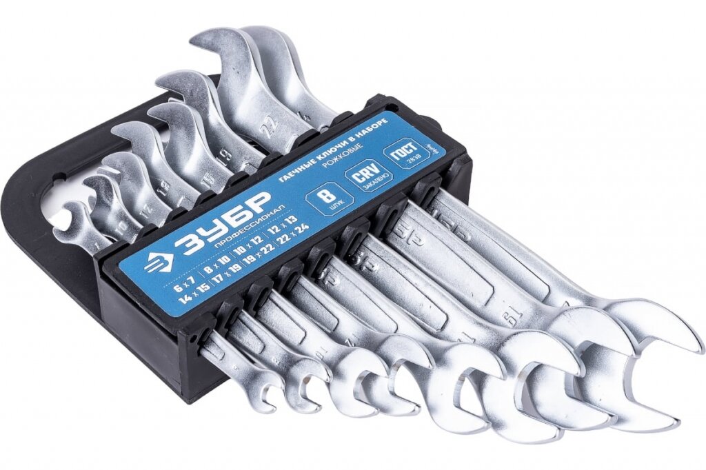 Купить Набор рожковых гаечных ключей ЗУБР Профессионал 8 шт. 6-24 мм 27011-H8