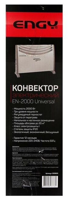 Обогреватель ENGY EN-2000 Universal, конвекторный, 2000 Вт, 25 м², белый 7365694