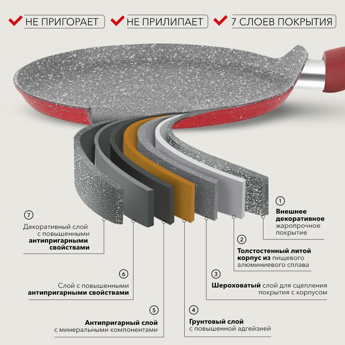 Сковорода антипригарная литая блинная Moulin Villa Raspberry RPS-21-I, индукция, 21 см