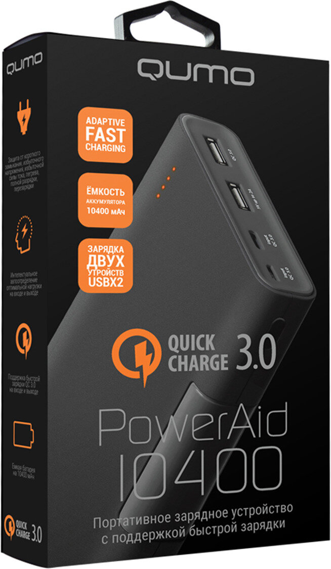 Повербанк Qumo PowerAid, 10400 QC/PD, 10400 мАч, черный интересное: