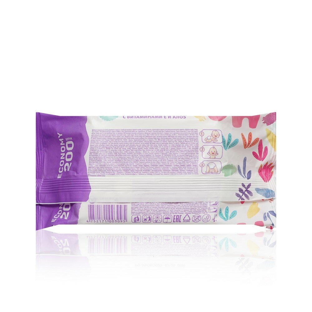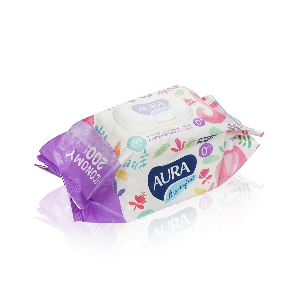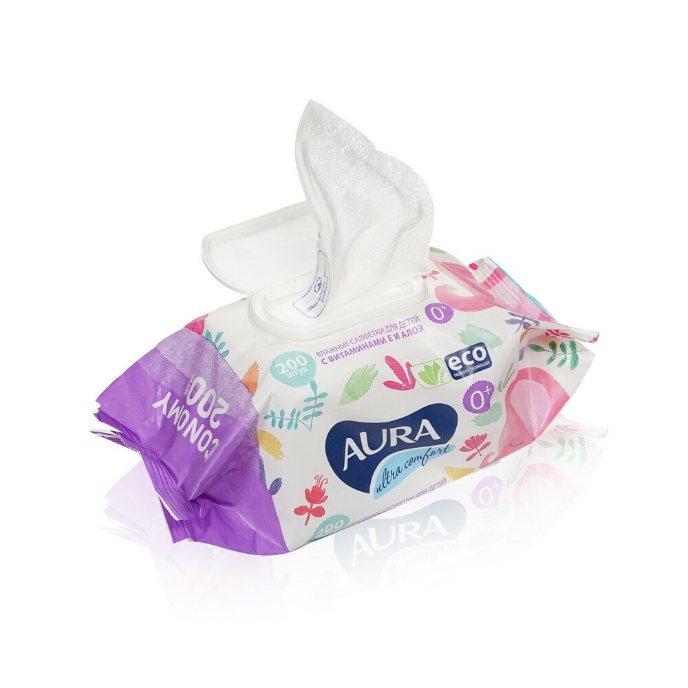 Влажные салфетки Aura Ultra Comfort, пластиковая крышка, 200 шт., 1 уп.