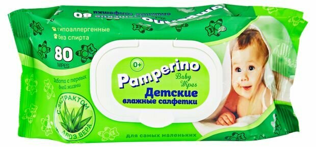 Купить Влажные салфетки Pamperino Детские с экстрактом алоэ вера, пластиковая крышка, 80 шт., 1 уп.