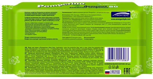 Салфетки влажные PA-15308 "PAMPERINO" очищающие гипоаллергенные "детские" с Алоэ Вера (25х15см) в мягкой упаковке (80шт) авангард