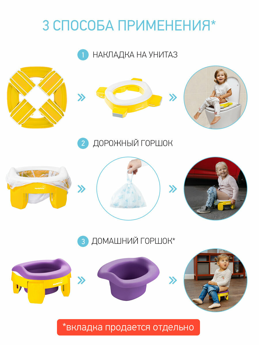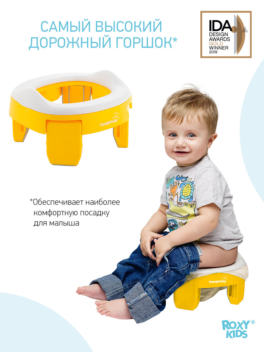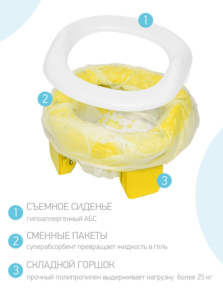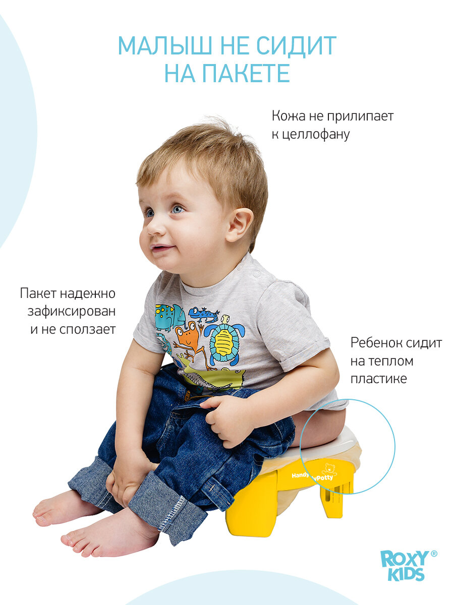 Горшок складной дорожный и насадка на унитаз HandyPotty от ROXY-KIDS с тремя пакетами, цвет желтый