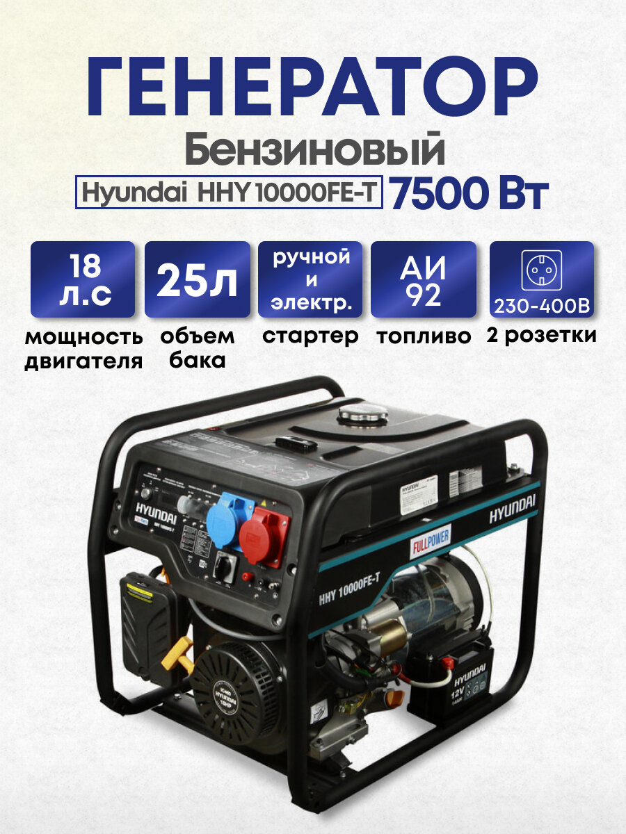 Генератор бензиновый Hyundai HHY 10000FE-T, 18 л.с, 7500 Вт