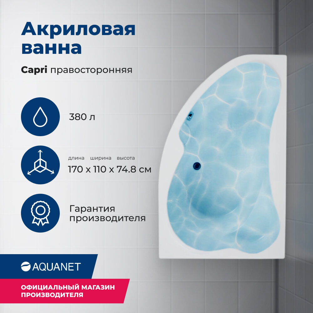 Акриловая ванна Aquanet Capri 170x110 R 205387 без гидромассажа интересное: