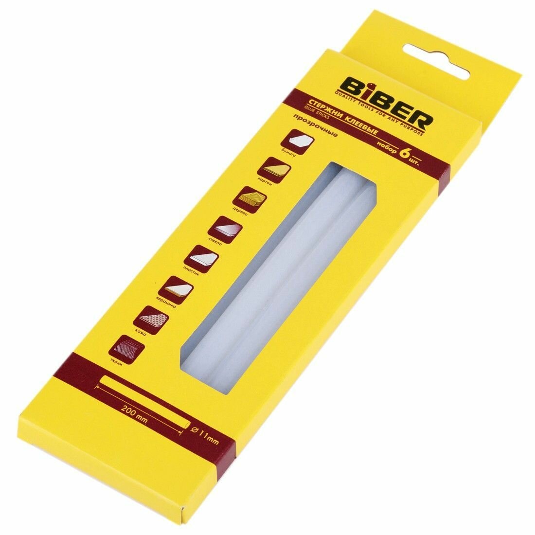 Стержни для клеевого пистолета Biber 60131, прозр., 11х200 мм (6 шт.)
