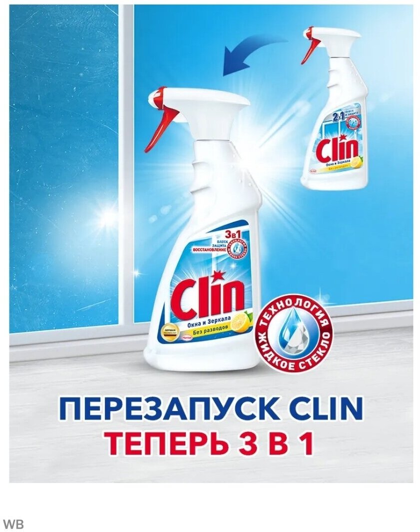 Clin Средство для мытья стекол и поверхностей 3 в 1 Лимон, 500 мл, 2 шт