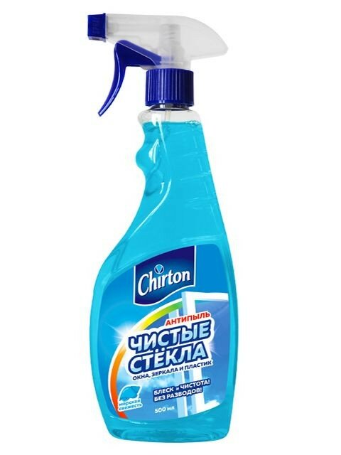 Средство для мытья стекол, зеркал и окон CHIRTON "Морская свежесть" антипыль, 500 мл