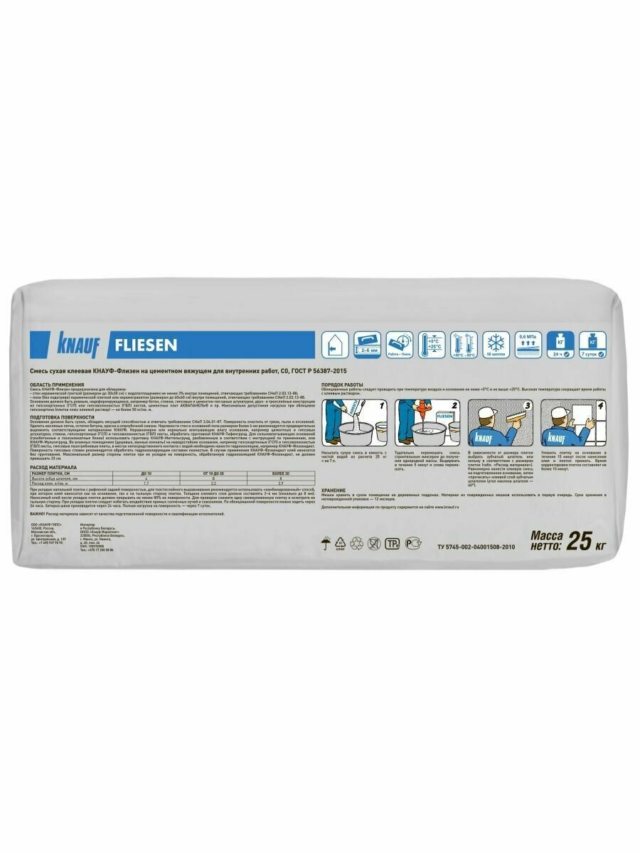 КНАУФ Флизен Плюс клей плиточный усиленный (25кг) / KNAUF Fliesen Plus клей для плитки и керамогранита усиленный (25кг)