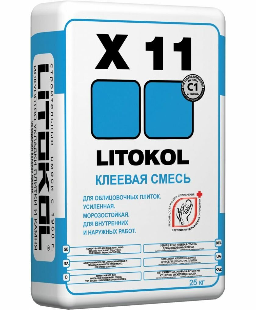 Литокол X11 Эво клей для плитки и керамогранита (25кг) / LITOKOL X11 Evo эластичный клей для плитки, керамогранита и камня (25кг)