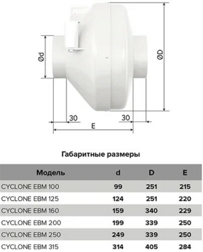 CYCLONE-EBM 125 ЭРА (ERA) Вентилятор центробежный канальный приточно-вытяжной