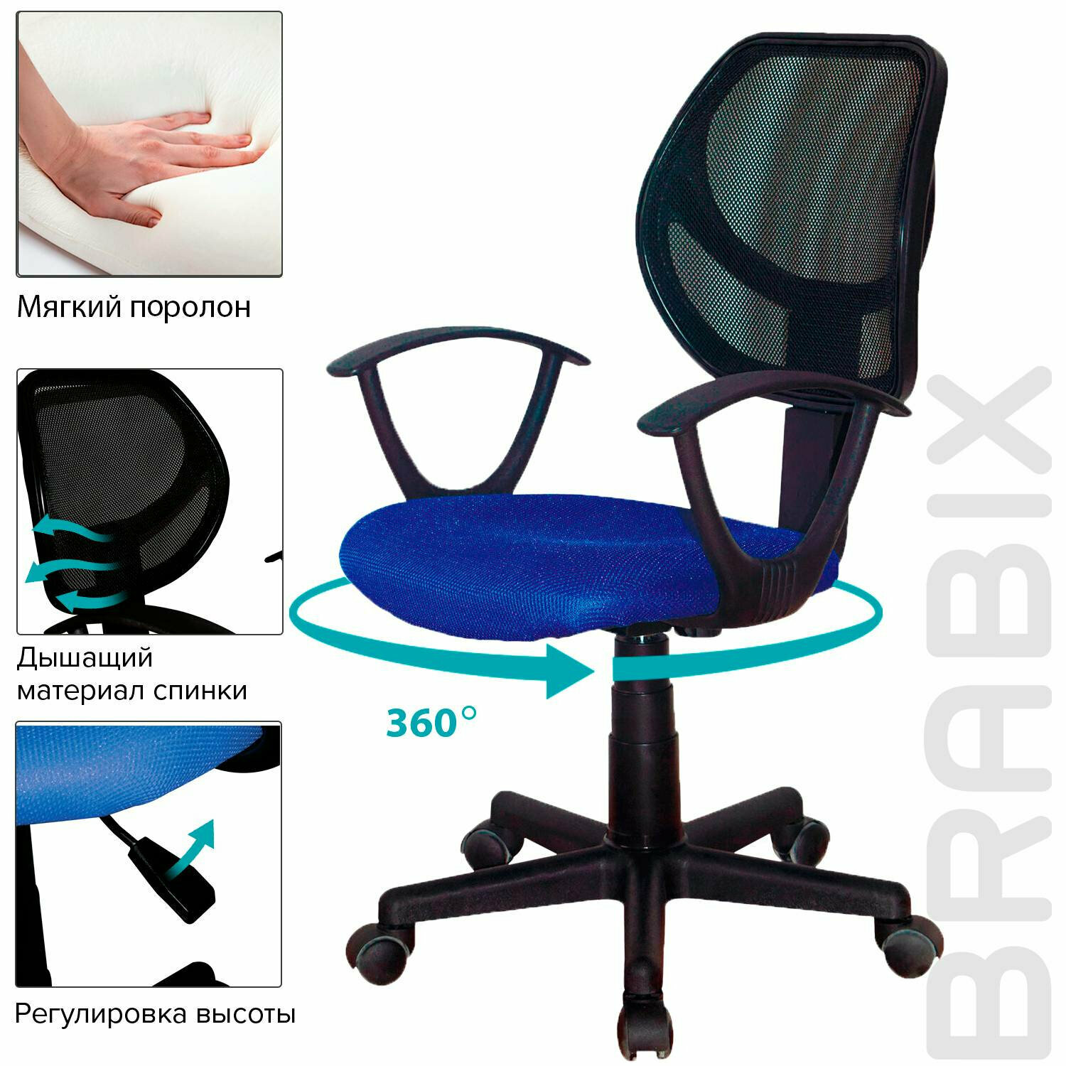 Кресло офисное Brabix Flip MG-305, синий/черный