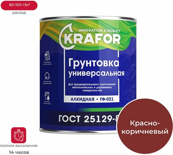 Грунтовка Krafor ГФ-021 0,8кг Красно-коричневая 26 301