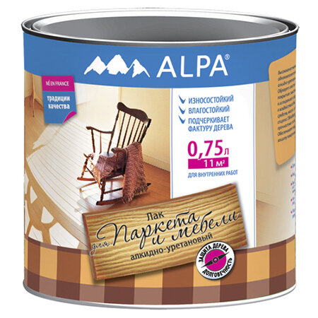 Купить Защитный Лак для Стен, Паркета и Мебели Alpa 0.75л Бесцветный, Глянцевый, Акрил-Уретановый, Сверхпрочный, Износостойкий / Альпа.