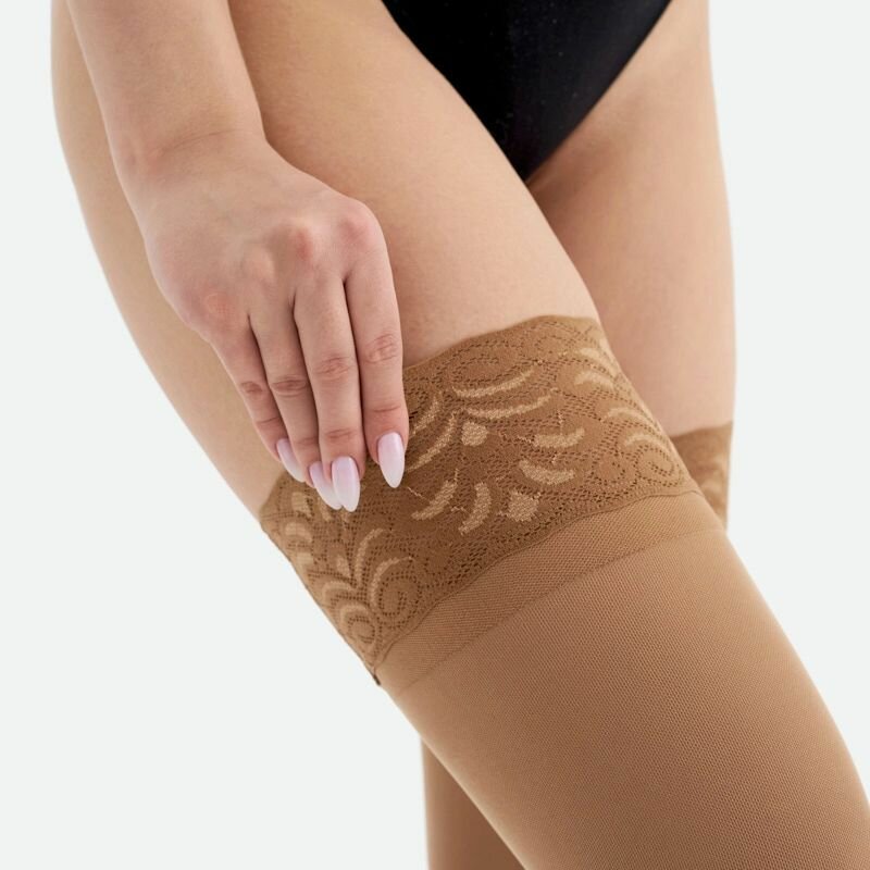Компрессионные чулки с микрофиброй VENOTEKS Comfort 2C202, 2 класс, широкая ажурная резинка, Размер XL, Бежевый