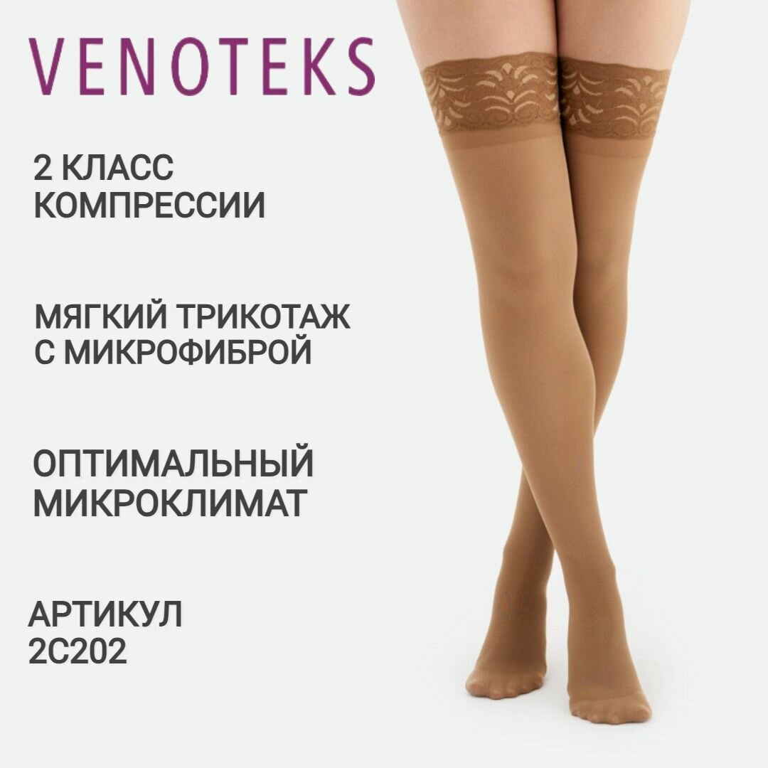 Чулки Venoteks Comfort 2C202 противоварикозные, компрессионные 2 класс (Цвет:Бежевый, Размер:XL)