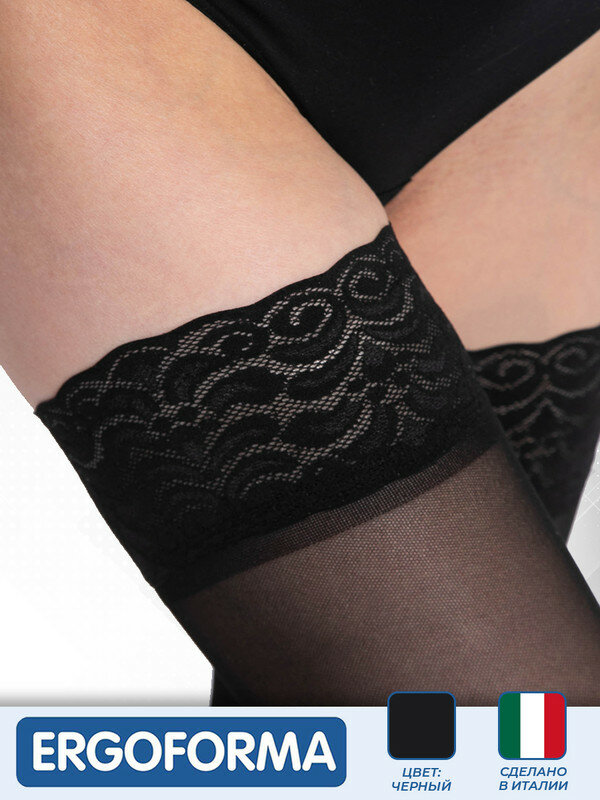 Чулки Ergoforma 221 компрессионные 2-го класса с силиконовыми вставками в области ажурной резинки (2 класс, Ergoforma, Чулки, 5 размер, Черный)